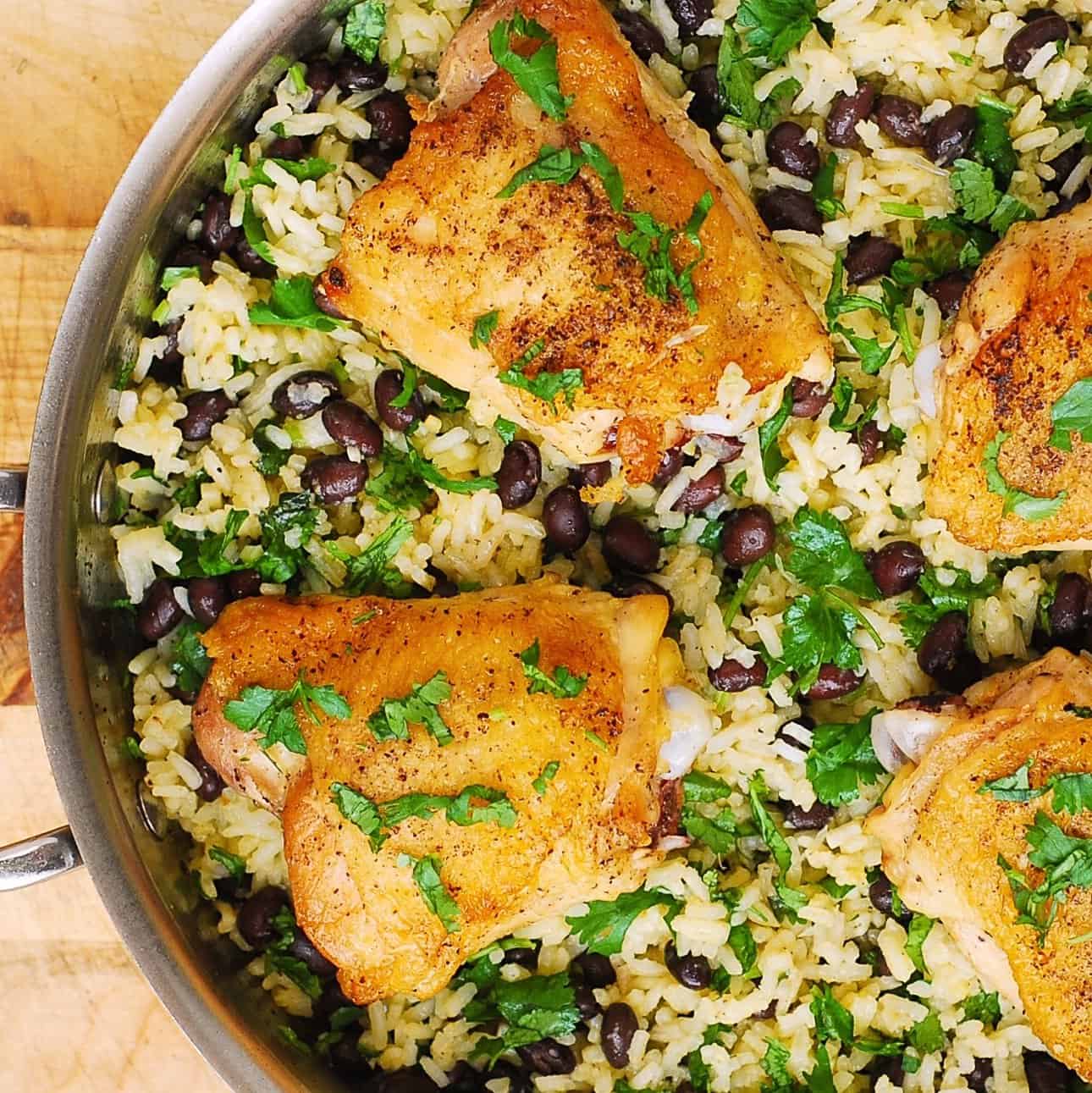 One-Pan Chicken Thighs with Cilantro-Lime Black Bean Rice